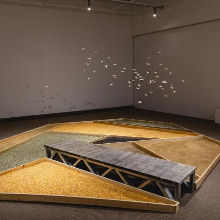 Au printemps 2021, la période des semis prend tout son sens à l’intérieur des murs du Musée. Accumulation de semences, des jeux d’échelle, des jeux d’ombres et de lumières colorées, permettent à l’artiste bas-laurentienne Émilie Rondeau de créer des œuvres installatives inédites. À vol d’oiseau ou à la renverse, les effluves des matériaux organiques flottent dans l’air et les textures et les couleurs ravivent les sens. Accueillantes par leur familiarité et surprenantes par leur ingéniosité, les œuvres invitent à la circulation et à l’appréciation du territoire agricole environnant.